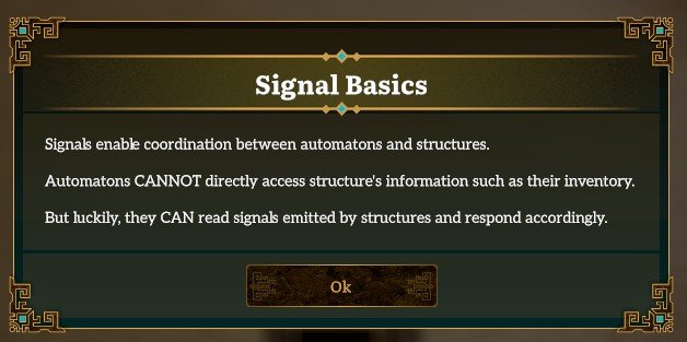 The tutorial starts by introducing you to the concepts of signals your automatons can understand: