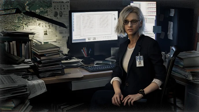 Ok the trailer mentions that this character is an FBI agent, and that her mom was murdered. Oooh! Maybe this is Ethan Winters’ kid! You know, the psychic baby that was apparently dismembered and reassembled in Resident Evil 7 and Village while Ethan fought vampires and werewolves! (Sidebar: I really did not like those games. Yay spooky stuff, but man seriously? Werewolves?) But wait, that girl’s name was Rosemary and she’d probably be too young to play this character.